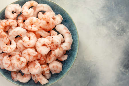 shrimps cooked seafood ready to eat prawn natural product ingredient snack. food background copy space healthy eating raw pescetarian