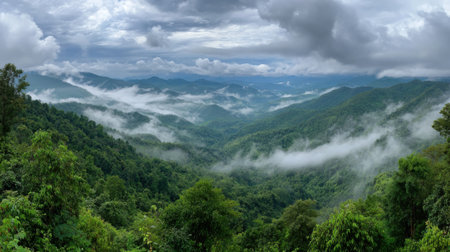 foggy floating over mountain range in northern of thailand