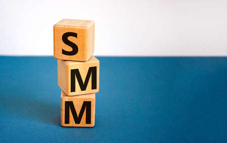 Cubes with abbreviation SMM (Social media marketing) on light gray background