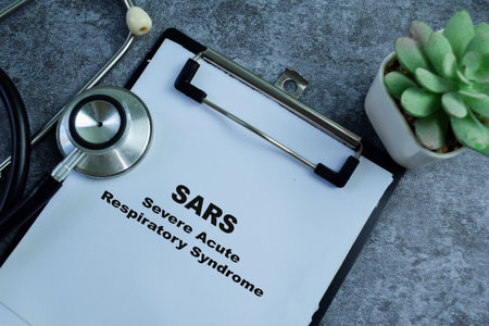 Concept of SARS - Severe Acute Respiratory Syndrome write on paperwork isolated on wooden background.