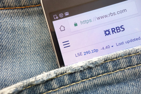KONSKIE, POLAND - MAY 19, 2018: RBS (Royal Bank of Scotland) website displayed on smartphone hidden in jeans pocket