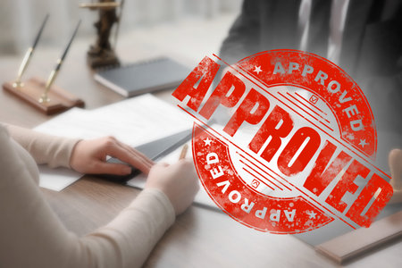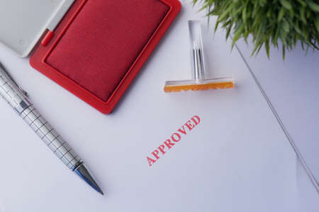Document that has been stamped printed on Approved in large diagonal red text and rubber stamp, Business credit concept