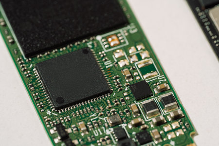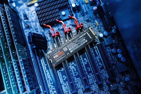 Modern ssd data storage, nvme protocol, PCI express bus, m2 storage, close-up