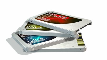 data storage devices concept with Hard Disk, Solid State Drive (SSD), SSD M.2 PCIE NVME.