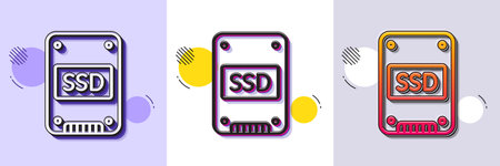 SSD icon. Halftone dotted pattern. Gradient icon with grain shadow. Solid-state drive sign. Storage disk symbol. Line sSD icon. Various designs. Vector