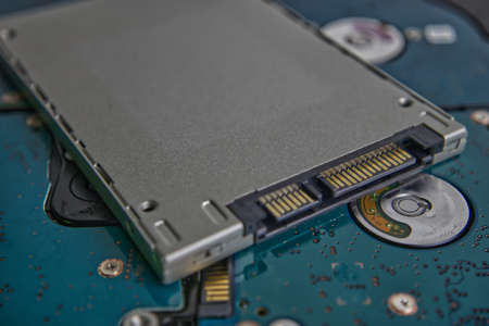 SATA connection of a SSD solid state drive Drive closed up shot.