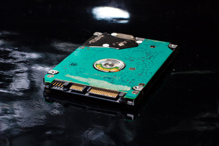 2.5 inch hard disk drive for laptop or computer on a dark paper background. close up, selective focus
