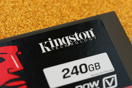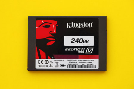 TERNOPIL, UKRAINE - JUNE 20, 2022: Kingston ssdNOW 300 SSD solid state drive storage 240gb assembled in Taiwan under the Kingston Technology Corporation headquartered in California