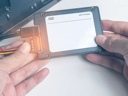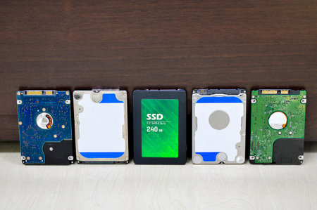 SSD disk drive placed on wooden surface, high speed SSD, SSD sata port