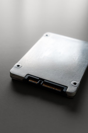Close-up view of a solid-state drive (SSD). Modern data storage technologies.