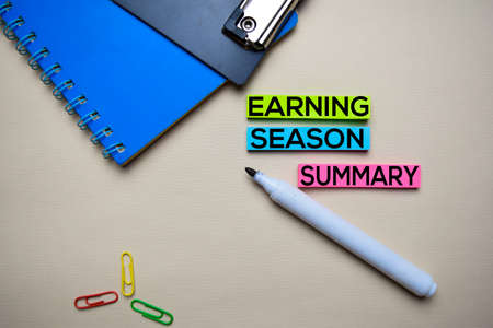 Earning Season Company text on sticky notes with office desk. Stock Market Exchange Concept