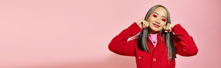 Mix vanilla colors. Teenager girl with pink hair. Hello Japan