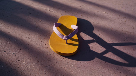 Summer rubber shoes on bright yellow wooden planks