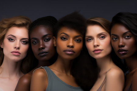 Beautiful women with various skin tones, group of people from different ethnic backgrounds, diversity of human skintones, unique skin tone shades, authenticity and inclusivity concept
