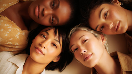 Four diverse models posing together, celebrating diversity, sisterhood, and female empowerment. Ai generated