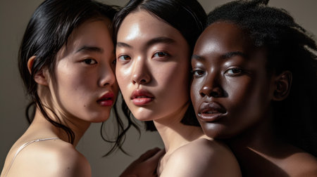 Studio headshot of beautiful multiethnic girls with natural beauty and glowing smooth skin.