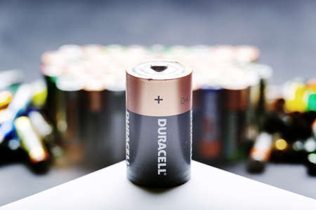 Kiev, Urkaine, 16 June 2020, Closeup at pile of Duracell AA alkaline batteries.