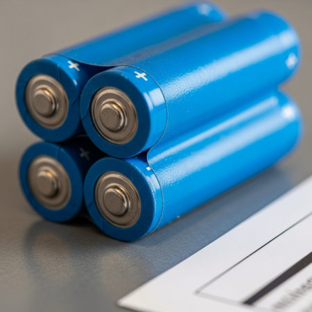 Close-up of modern batteries showcasing sleek design with metallic finish. Ideal for energy-related projects or technology themes in stock photography.
