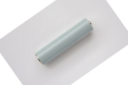 spent used rechargeable Nickel Metal Hydride (Ni-MH) battery, grey background, flat lay