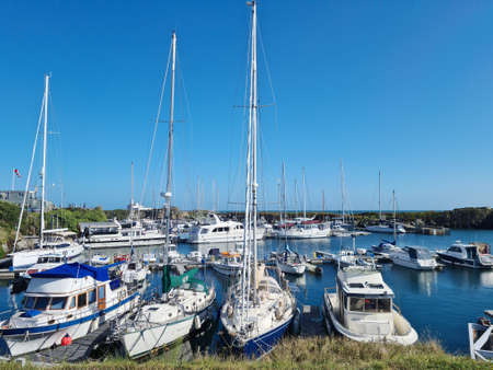 WEYMOUTH, UNITED KINGDOM - AUGUST 30: View of boats docked along the waterfront at Weymouth Harbour on a sunny day on August 30, 2019 in Weymouth