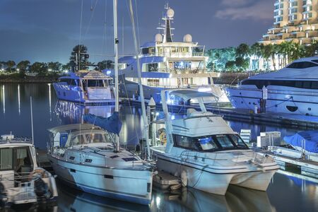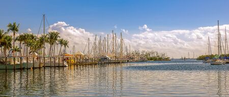 Yachts docked in the port at sunny day. Miami. Florida. USA