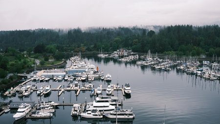 Aerial view of a marina in Vancouver, British Columbia, Canada