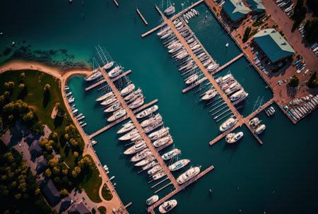 Generative AI : Aerial view of yachts docked near Kemer Turkey