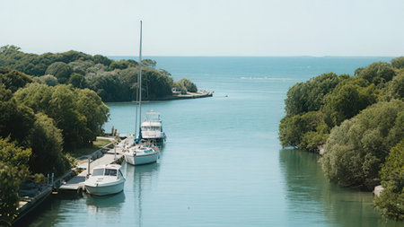 Generative AI : White yachts in port City of Oshkosh Wisconsin