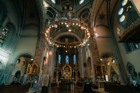 The interior of St. Stephen's Basilica in Budapest, Hungary.