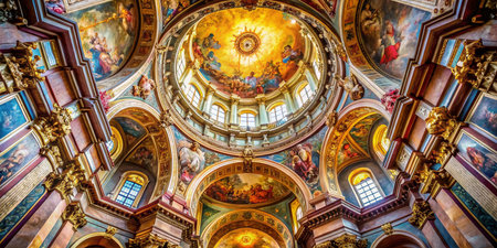Prague St. Nicholas Church Dome, Ornate Interior, Czech Republic, Architectural Detail, Painted Ceiling