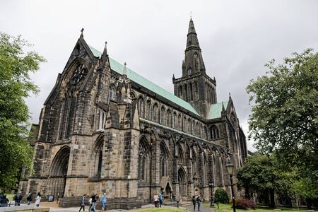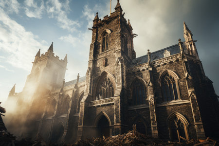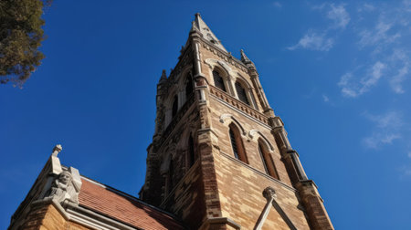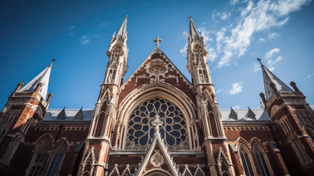 Historic Gothic Cathedral with Stunning Arch Windows and Stone Steeple, a Timeless Monument.