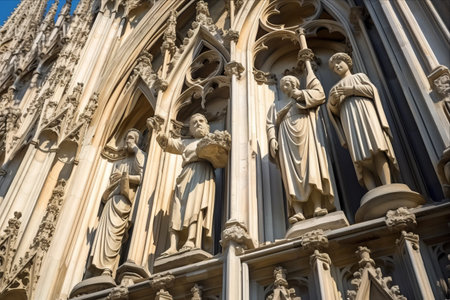 Classic Gothic architecture with pointed arches and sculpted details, blank space in background