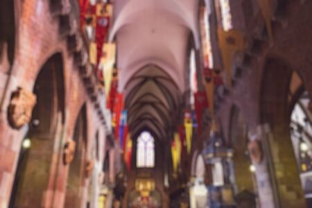 Abstract blurred background with interior of Katedra Sw Jana Chrzciciela or Cathedral of St John the Baptist in Wroclaw, Poland.