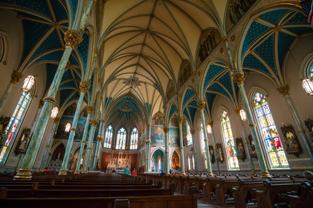 SAVANNAH, GEORGIA - SEPTEMBER 5 : Interior of St John the Baptist cathedral on September 5, 2016. The Cathedral was founded in 1700 by the first French colonists.