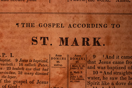 Close up of the word St. Mark in an old dictionary.