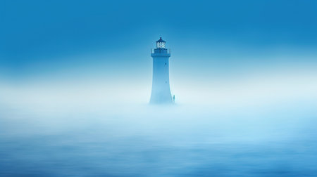 Majestic Lighthouse Stands Tall Amidst Thick Fog, Guiding Ships Safely Through Misty Coastal Waters