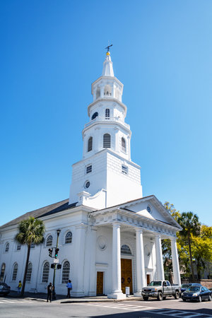 A view of the famous St. Michaels Episcopal Church in downtown Charleston in the USA