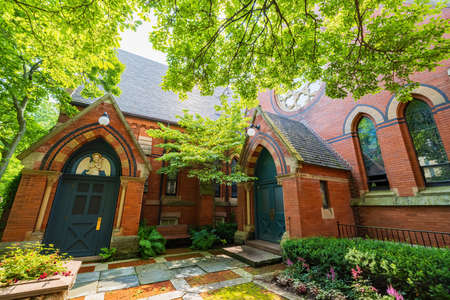Sunny exterior view of Sage chapel of Cornell University at Ithaca, New York