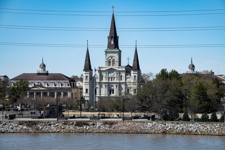 New Orleans, LA/USA - circa February 2016: St. Louis Cathedral and Jackson Square in French Quarter, New Orleans, Louisiana