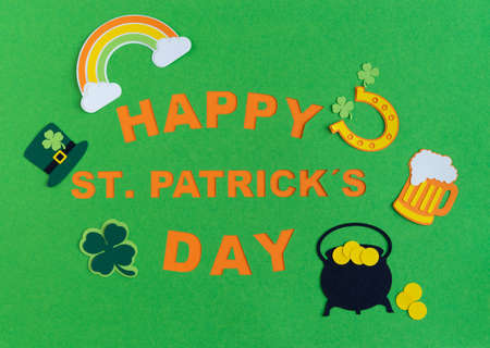 St. Patricks Day lettering with objects and decorations. High quality photo