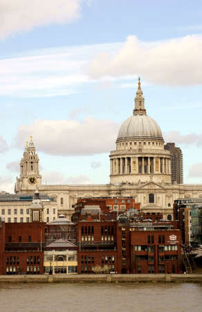 London UK April 01 2015: The City of London school at the river Thames and the St Paul39s Cathedral behind it in fine weather on April 01 2015 in London.