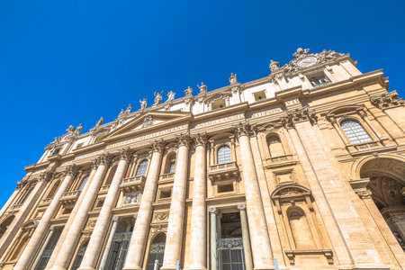 Close up of facade of Basilica di San Pietro, Vatican City in Rome, Italy.
