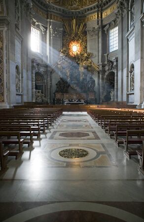 Interior of Saint Peters basilica with a ray of light from the window. Vatican