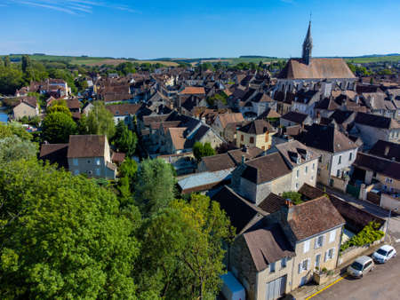 North of Burgundy wine making region, view on Chablis village with famous white dry wine made from Chardonnay grape, wine tour in France in summer