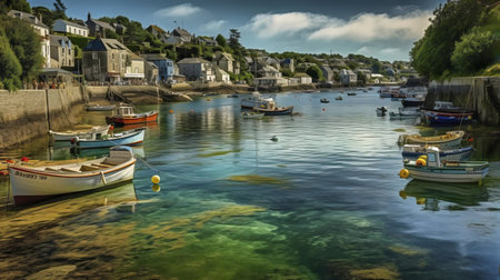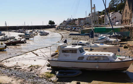 Barfleur, France - May 21, 2012: Normandy, view of the harbor and boats at low tide, near the village.