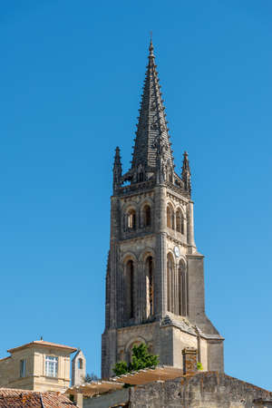 Saint-Emilion, Gironde, France. The church in the medieval village