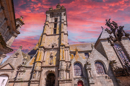 SAINT THEGONNEC, FINISTERE, BRITTANY, FRANCE, MAY 17, 2025: exteriors and architectural details of the Parish Close church, French term is enclosure parishiel