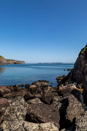Scenic view of buoy and rocks surrounding little island Ile-de-Brehat in France