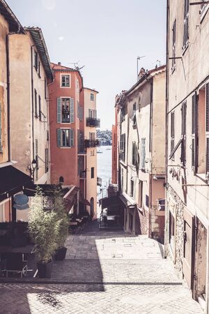 Antibes, France - June 27, 2016: day view of Rue du Dr Rostan street in Antibes, France. Antibes is a popular seaside town in the heart of the Cote d'Azur.