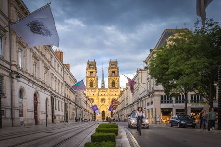 Orleans, France, October 10, 2019: Orelans center and Royal cathedral of the Holy Cross during the evening.